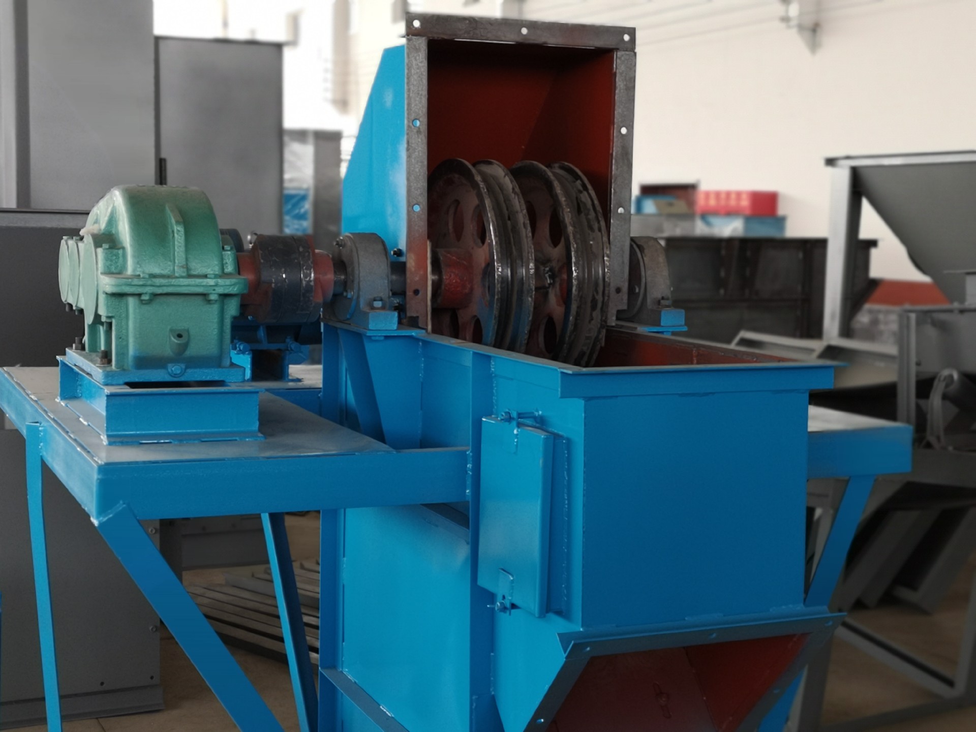藍(lán)色款斗式提升機(jī)機(jī)頭和機(jī)尾展示圖